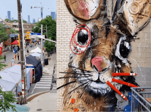 This mural represents the large community of Portuguese people and businesses that reside within the Little Portugal Area. It also represents a merging of the