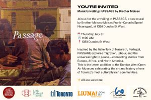 FOR IMMEDIATE PRESS RELEASE Dundas West Open Air Museum Unveils “PASSAGE” – A New Mural by Brother MoisesCelebrating Migration & Resilience Toronto, ON – [July 22, 2025] – The Dundas West Open Air Museum proudly presents “PASSAGE”, a striking new public artwork by internationally acclaimed artist Brother Moises (Moises Frank
