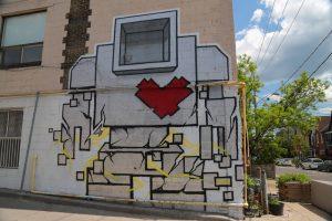 Many “Lovebot” sculptures and images can be found across Toronto, but this is one of the largest of its kind. Since it was first painted