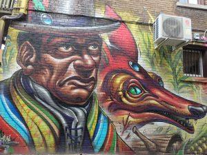 An original classic drawing located in the most inconspicuous location, the Boland Laneway. By the observation of the elements that accompany the portrait, we can